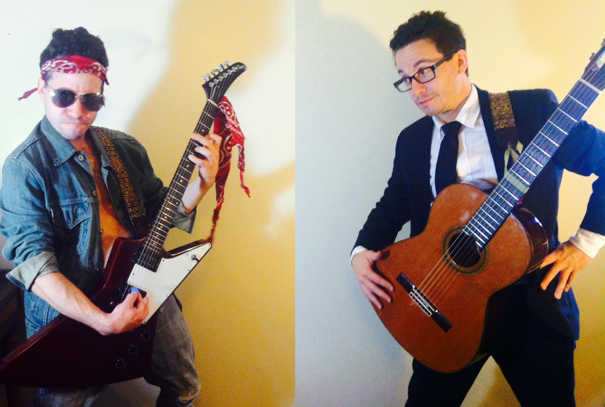 ANOTHER ME: Never mind, you guys need to stop your complaining for a second and take in some big picture thoughts. Have you considered the fact that neither of you guys has anything resembling a boss or that people give you money to play guitar solos? Do you know how many people spend a third of their waking hours penned off in cubicles. Have either of you guys ever even seen a cubicle?