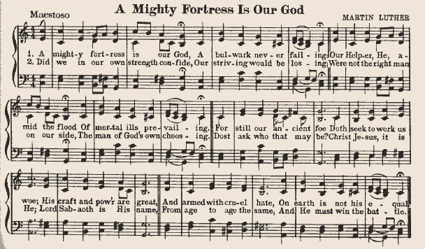 In addition to being the conceptual progenitor of the style, Martin Luther was one of the style’s contributing composers. He was responsible for some of the most famous chorales in the Lutheran tradition. Principal among these is Eine Feste Berg, “A Mighty Fortress” (Burkholder, Grout, and Palisca 218).