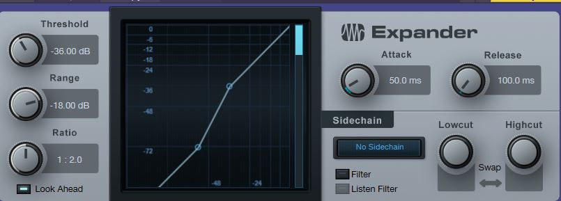 When a signal falls below a certain threshold, the expander is triggered, and low-level sounds are turned down while high-level sounds are maintained. The expander/gate is the opposite of a compressor/limiter. A gate, or noise gate, is often used as a repair tool. Below a certain threshold, a noise gate turns the sound completely off, whereas an expander only turns the sound down. This effect can reduce or eliminate unwanted sounds like amplifier hum, microphone hiss, or other residual sounds captured by the microphone.