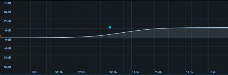 With shelving, all frequencies at or below a selected frequency are increased or decreased by the same amount. The resulting EQ curve looks like a flat, tabletop or like a shelf, hence the name. If your desire is to increase all frequencies above 1,000 Hz, say, then applying a shelf is the appropriate tactic.